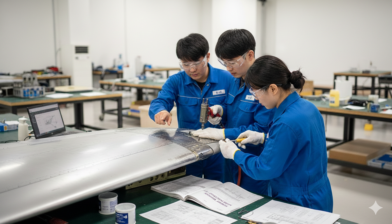 항공기 수리를 위한 판금 수리 역량을 갖춘 정비사 양성한다